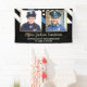 Cette conception comprend un drapeau de la police avec des rayures noires et blanches, ainsi qu'une mince bande bleue. Une excellente façon de féliciter la nouvelle académie de police diplômée. Customiser avec le nom de l'agent d'application de la loi diplômé en or. Célébrez ce jalon en style et en personnaliser avec des photos de l'officier diplômé !