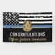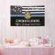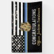 Cette conception comprend un drapeau de la police avec des rayures noires et blanches, ainsi qu'une fine bande bleue. Customisez avec le nom de l'agent d'application de la loi, du shérif, du capitaine ou du chef qui prend sa retraite ou qui est diplômé. Une excellente façon de féliciter le nouveau retraité ou diplômé pour sa retraite ou son diplôme de l'académie de police.