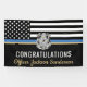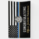 Cette conception comprend un drapeau de la police avec des rayures noires et blanches, ainsi qu'une fine bande bleue. Customisez avec le nom de l'agent d'application de la loi, du shérif, du capitaine ou du chef qui prend sa retraite ou qui est diplômé. Une excellente façon de féliciter le nouveau retraité ou diplômé pour sa retraite ou son diplôme de l'académie de police.