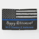Bonne retraite ! Ajoutez la touche finale à votre retraite de police avec ces bannières de retraite de police de ligne bleue mince et des fournitures de parti. Drapeau américain design en couleurs Police Drapeau, design vintage en détresse sur cuir noir gris. Cette joyeuse collection de retraite d'agents de police sera un favori. Personnalisez avec le nom des officiers, et une retraite heureuse peut être changée en félicitations soit pour le parti de la retraite de la police, soit pour le parti de graduation de l'académie de police. Consultez notre mince collection de lignes bleues pour les invitations à la retraite de la police, les cadeaux de la police, les faveurs de la fête et les fournitures. DROIT D'AUTEUR © 2020 Judy Burrows, Black Dog Art - Tous droits réservés. Police Mince Ligne Bleue Personnaliser la bannière du Parti de retraite