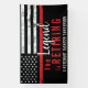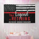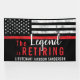 Cette conception comprend un drapeau de pompiers avec des rayures noires et blanches, ainsi qu'une fine bande rouge. Le texte "La légende prend sa retraite" se trouve au-dessus du nom du pompier, lieutenant ou chef qui prend sa retraite. Fêtez dans le style !