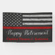 Bonne retraite ! Ajoutez la touche finale à votre retraite de pompier avec ces bannières de retraite de pompier de ligne rouge mince et les fournitures de fête. Drapeau américain design en couleurs Flag Firefighter, design vintage en détresse sur cuir noir gris. Cette joyeuse collection de retraite des pompiers sera un coup de coeur. Personnalisez-vous avec un nom de pompier, et une retraite heureuse peut être changée en félicitations pour la fête de la retraite des pompiers, ou pour la fête de remise des diplômes de l'académie des incendies. Consultez notre mince collection de lignes rouges pour les invitations à la retraite des pompiers, les cadeaux des pompiers, les faveurs de fête et les fournitures. DROIT D'AUTEUR © 2020 Judy Burrows, Black Dog Art - Tous droits réservés. Bannière de retrait des pompiers de la ligne rouge mince