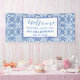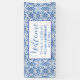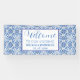 Moderne, élégant, carrelage portugais, bleu et blanc, espagnol, Italie, méditerranéen, Mariage d'été Bannière d'accueil. Parfait pour les jeunes mariés. Vous pouvez le personnaliser avec le nom et la date de la mariée et du marié.