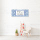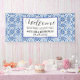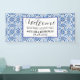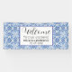 Moderne, élégant, carrelage portugais, bleu et blanc, espagnol, Italie, méditerranéen, Mariage d'été Bannière d'accueil. Parfait pour les jeunes mariés. Vous pouvez le personnaliser avec le nom et la date de la mariée et du marié.