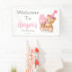 Cette aquarelle peinte à la main est ornée d'un adorable ours en peluche dégustant de la glace rose, avec des gouttes tombant sur le sol. Créée par Daphsam, cette charmante oeuvre originale est parfaite pour un panneau d'accueil pour l'anniversaire d'une petite fille.