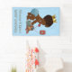 Bandeau bleu prince baby shower vintage, élégante et personnalisée. Une belle illustration vintage d'un garçon afro-américain adorable et mignon avec une couche bleue stylée et une couronne d'or. Il parle sur un vieux téléphone rouge rétro vous disant qu'il est en route ! Il tient une petite valise bleue et son ours en peluche excentrique se penche dessus - il est tout emballé et prêt pour son arrivée ! L'arrière - plan est d'une jolie couleur bleue. Si vous avez besoin d'aide pour customiser votre produit, veuillez me contacter par l'intermédiaire de mon magasin et je serai heureux de vous aider. J'ai des produits correspondants dans mon magasin.
