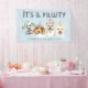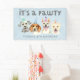 Banderole de fête pour la fête d'anniversaire du chiot de votre enfant. Illustration de 4 chiens (dalmate, beagle, pit bull terrier) avec casquettes de fête. Le texte ci-dessus dit "c'est un pawty" et vous pouvez ajouter le nom de votre enfant sous l'illustration.