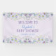 Cette élégante bannière de baby shower fera que chacun se sentira si bienvenu à la douche! Il dispose d'un jardin fleur sauvage aquarelle en haut et en bas dans les tons violet et bleu avec des feuilles verts.