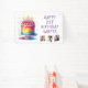 A personalized three photo template birthday banner with a rainbow cake on the front. Cute for the lgbtqia birthday party. Add name and age in personalize area.