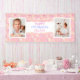 Bannière d'anniversaire de fille arc-en-ciel avec un arrière - plan rose. Personnalisé avec son nom, son âge, et 2 photos.