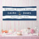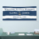 Conçu dans la Marine Nautique avec des rayures blanches et une Ancre argentée, ce bandeau de réception de mariage est facile à personnaliser avec les noms et la date Mariage de la mariée et de la mariée. Remplacez simplement notre exemple de texte par vos détails. C'est rapide et facile. Peut être acheté avec des accessoires suspendus pour usage extérieur ou intérieur.