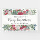 Les roses rouges et blancs sont nichés dans une variété de verdure hivernale pour créer des bordures élégantes au-dessus et au-dessous du texte. Le nom du célébrant de l'anniversaire est écrit dans un script populaire branché. Bienvenue à et 60e anniversaire sont écrits en polices serif classiques. La verdure d'hiver comprend le houx, les baies et l'eucalyptus. Tout le texte peut être facilement édité.