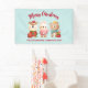Bannière de Noël avec une jolie illustration représentant un lapin, un ours et un cerf vêtus d'une tenue festive. Adorable et capricieux.