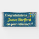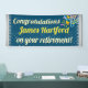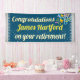 Bannière parfaite pour votre collègue, patron ou ami à la retraite. Un arrière - plan bleu avec des étoiles confetti personnalisées avec le nom du retraité.
