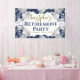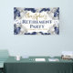 Bannière de la fête de la retraite de la marine et du ballon d'argent. Ce design fabuleux est la meilleure façon de féliciter quelqu'un pour sa retraite. Personnalisez avec notre propre nom personnalisé. Typographie bleu et or et somptueux ballons bleu marine et argent.