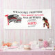 Banderole de retraite géniale pour votre collègue ou patron de pompier quand ils prennent leur retraite. Design a un drapeau avec une hache rouge et un pompier tirant un tuyau d'eau. Ajoutez les détails de votre fête pour une bannière d'un genre.