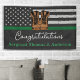 Ajoutez la touche finale à votre parti de retraite militaire grâce à ces bannières et fournitures militaires de design usagées et à cette fine ligne verte. Drapeau américain dans la conception de couleurs militaires. Cette petite bannière vintage est parfaite pour une fête de retraite militaire, des déploiements militaires, une fête de bienvenue militaire, un diplôme militaire et des soldats qui partent. Parfait pour tous les militaires, l'armée, la protection de la frontière, la patrouille frontalière, l'agent de conservation, le garde du parc, le garde du gibier, l'application de la loi fédérale. Personnalisez cette invitation de drapeau américain avec votre nom de soldats et votre message personnel. Consultez notre collection pour obtenir des cadeaux de retraite, des cadeaux d'obtention de diplômes militaires, des faveurs de parti et des fournitures. DROIT D'AUTEUR © 2021 Judy Burrows, Black Dog Art - Tous droits réservés. Bannière de l'armée en cuir mince en ligne verte