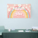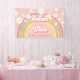 Sept est une Vibe ! Bannière de 7ème anniversaire d'inspiration rétro avec polices et couleurs de style 70's, arc-en-ciel et marguerites en rose