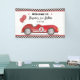 Célébrez la journée spéciale de votre petit speedster avec notre charmant bandeau de bienvenue, conçu exclusivement pour les fêtes d'anniversaire des garçons. Ce panneau accrocheur mêle charme vintage et fantaisie ludique, avec une voiture de course rétro magnifiquement illustrée à l'ombre vibrante de rouge, accentuée par des ballons assortis.