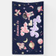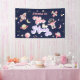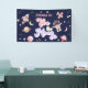 Cette bannière d'anniversaire d'espace présente les années 70 texte rétro, des couleurs roses et violettes et des illustrations d'espace. Les illustrations sont des planètes, des étoiles et un navire-fusée. L'arrière - plan est bleu marine de l'espace, ce qui en fait la bannière parfaite pour célébrer votre petit astronaute.