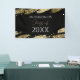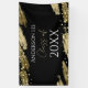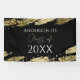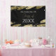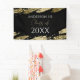 Design élégant avec éclaboussures de peinture dorée fausse. Tout le texte est réglable et facile à modifier selon vos besoins de fête. Panneau de bienvenue noir et or, réunion de classe, écriture, élégant, n'importe quelle année, modèle de fête.