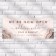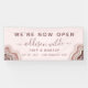 Rose Gold Blush Rose Pailleté Géode Luxe Ouvert Maintenant Bannière d'affaires. Parfait pour les artistes maquilleurs, coiffeurs, cosmétologues, et plus encore !