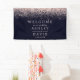 Bannière de bienvenue rose Gold Confetti Marine Mariage Bleu. Beau vintage glam rose confetti d'or contre un arrière - plan bleu marine. Ce design personnalisé et moderne peut facilement être personnalisé avec vos propres détails.