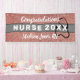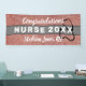 Surprenez votre infirmière diplômée avec une grande bannière moderne pour vous féliciter! Cette bannière est conçue avec un arrière - plan en faux parties scintillant rose rose rose tendance, bande horizontale grise et silhouette stéthoscope noir au centre. "Félicitations infirmière" est en caractères gras brossé blanc mélangé avec des lettres de bloc. L'année d'études supérieures et le nom et le titre complets de l'infirmière sont saisis en cliquant simplement sur l'option Personnaliser le modèle.