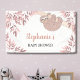 Ajoutez cette belle bannière de Baby shower à votre célébration. Il dispose d'une jolie parties scintillant en or rose bébé paresseux souriant et suspendu à un arbre entouré de feuilles aquarelles dans les tons roses. Vous pouvez customiser la bannière de baby shower de cette petite fille en changeant le nom. Aquarelle originale © Michele Davies.