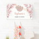 Cette jolie bannière de Baby shower présente une jolie parties scintillant rose en or, un bébé paresseux souriant et suspendu à un arbre entouré de feuilles d'aquarelle dans les tons roses. Vous pouvez customiser la bannière de baby shower de cette petite fille en changeant le nom. Aquarelle originale © Michele Davies.