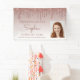 Célébrez sa graduation du lycée ou de l'université avec cette bannière photo chic et glamour, avec une bordure brillante rose or fausse parties scintillant drip et ombre arrière - plan. Remplacez facilement l'image de l'échantillon par une photo du diplômé. Personnalisez-le avec son nom en écriture rose foncé, avec le nom de l'année de classe et le nom de l'école ci-dessous en caractères sans serif.