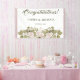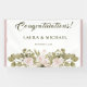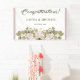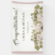 Une bannière Mariage pour votre réception de jour spécial. Conçu avec des tons vert pâle et floral rose et doux, sur un arrière - plan blanc aux reflets verts profonds. Le texte comprend : Félicitations!, Les noms de la mariée et de la chambre et la date du Mariage. Pour personnaliser, insérez simplement vos détails dans notre modèle facile, en remplaçant l'exemple de texte. N'oubliez pas de consulter l'ensemble de la collection de Mariages BoHo Style Bush Pink et Green.