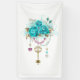 Clé d'or antique aux roses turquoise tendance décorée de feuilles d'or blanc et de perles rose et bleu. Couleur tendance. Rose turquoise. Blanc doré. Tiffany bleu.