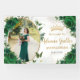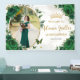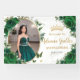 Coordonnez votre fête avec cette élégante bannière personnalisée à fleurs de roses vert émeraude ! Personnalisez-la facilement et rapidement, il suffit de cliquer sur le bouton Modifier à l'aide des outils de conception pour modifier le texte, changer les styles de police et les couleurs de police. Avec de belles roses vert émeraude vibrantes, un espace pour placer votre photo et des papillons verts et dorés. Articles assortis disponibles en magasin. (c) Somerset Fine Paperie