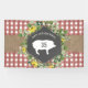 Design patiné rouge en vichy avec bande de burlap avec motif géométrique en damier avec silhouette de cochon entouré de fleurs sauvages et de verdure aux lunettes noires. Personnalisez le texte.
