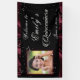 Belle bannière de célébration avec une bordure de satin bourgogne. "Quinceanera" réalisé dans un effet de feuille d'argent charmant et est accentué d'étoiles scintillantes. Personnalisez cette jolie bannière pour l'adapter à votre événement ou occasion. Ajoutez votre photo et message préférés. Parfait pour Sweet Sixteen, Bat Mitzvah et Quinceanera.