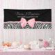Attirez les clients et les clients à votre cabine de bazar avec cette bannière chic et élégante d'impression de zèbre de 6 pi avec un ruban rose-clair mou attaché dans un arc girly mignon. Personnalisez cette bannière à la mode de cabine de poster de animal en ajoutant le nom de votre société et information de contact. C'est une image imprimée d'appartement, ruban non réel, et fait partie d'un ensemble.