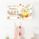 Bannière Baby shower automne automne, avec des tons jaunes, orange et marron, une image couleur eau d'un joli citrouille incrusté dans les feuilles d'automne, fleurs, vignes et feuilles d'automne tombant. Tout le texte peut être personnalisé.