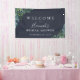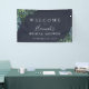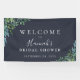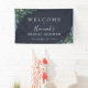Feuillage forestier rustique aquarelle, bannière événementielle personnalisée. Couleur arrière - plan bleu marine et typographie blanche chic.