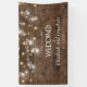 Cette bannière d'accueil mariage romantique et chic présente des jarres en maçon, des lampes à cordes sur un arrière - plan en bois rustique. Facile à personnaliser avec vos propres noms et date mariage. Cette bannière est parfaite pour la rustique et romantique grange mariage ou mariage de ferme douche nuptiale. Des éléments de coordination mariage sont disponibles dans ma collection de Mariages Rustic Mason Jar et String Lights et dans ma boutique Zazzle :