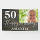 Rustic Wood Photo 50th Birthday Party Banner. Grand signe pour la fête du 50ème anniversaire avec une photo personnalisée, texte dans un script tendance avec un nom. L'arrière - plan est en bois foncé et le texte est en blanc. Personnalisez la bannière avec votre photo, votre nom et l'âge et faites votre propre bannière de fête d'anniversaire.
