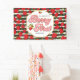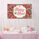 Vous cherchez une bannière de premier anniversaire de baies ? Regardez notre Bannière Rustique Black White Stripes Berry First Birthday! Il présente l'aquarelle numérique dessinée à la main de rose, motif de fraises rouges, bandes noires et blanches, fleurs blanches, effet numérique faux or, et feuilles. Parfait pour une fête de 1er anniversaire de fraise, donnant le ton pour une journée joyeuse et colorée. Belles décorations pour le premier anniversaire de la baie !