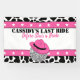 Célébrez les futures mariées avec cette bannière de fête d'enterrement de vie de jeune fille sur le thème de la cowgirl disco. Elle présente une impression de vache noire et blanche amusante avec une illustration d'une boule disco portant un chapeau de cowboy rose. Le texte est prêt à être personnalisé avec votre propre message.