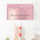 Faites bonne impression avec ce panneau de bannière d'entreprise chic avec des gouttes de parties scintillant rose et votre nom dans un script tendance contre un arrière - plan de fausse feuille rose. Parfait pour les salons de beauté, les maquilleurs, les coiffeurs et les esthéticiennes.