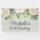 Célébrez avec une élégance intemporelle grâce à cette bannière de 80e anniversaire aux fleurs vert sauge avec des pivoines aquarelles luxuriantes et des fleurs crème douces qui se déversent sur le dessus. La verdure délicate et l'écriture calligraphique sophistiquée créent un arrière-plan raffiné parfait pour honorer une célébration marquante. Idéale pour une utilisation en intérieur ou en extérieur, cette belle bannière fait une déclaration gracieuse lors de toute fête d'anniversaire ou de tout arrière-plan photo.