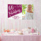 Bannière de fête d'anniversaire 60 ans Script 60 et Fabuleux Photo Magenta. Écriture blanche tendance et feuillage blanc avec une photo personnalisée sur une couleur rouge magenta vive et chic. Créez un fond pour une fête d'anniversaire des 60 ans pour elle. Personnalisez avec le nom et l'âge et ajoutez votre photo au modèle.