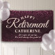 Modern Happy Retirement Nom personnalisé Bannière avec parties scintillant rose festive brillamment confetti Illustrations. Personnalisez avec votre nom et 1 ou 2 lignes de texte personnalisé. C'est le rose sur la version noire.