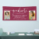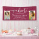 Modern Elegant Script Graduation Photo Burgundy Maroon Banner pour annoncer votre diplômé en style! Célébrez votre diplômé en style avec cette bannière personnalisable de graduation photo avec un design "diplômé" en écriture audacieuse, deux emplacements photo, et texte serif propre pour le nom et les détails de l'école. C’est la décoration moderne parfaite pour une grande fête, une maison ouverte ou une toile de fond photo ! Personnalisez le nom, l'année de classe, le nom de l'école et les photos — ou échangez plutôt dans une citation pour personnes âgées. Disponible en plusieurs tailles pour s'adapter à votre espace événementiel. Fait une grande déclaration à l'intérieur ou à l'extérieur. 🎓 Ajoutez les photos supérieures de votre diplômé 🖊️ Customisez le texte et les couleurs dans l’éditeur Zazzle 📸 Utilisez-le comme fond de table de desserts, décor de porche avant ou signe de bienvenue !