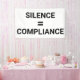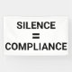 Marchez et appelez ceux qui laissent les commentaires racistes et xénophobes sans être défiés avec une bannière de protestation politique avec l'expression SILENCE = COMPLIANCE en gras texte noir sur un arrière - plan blanc. Pour une autre couleur arrière - plan, cliquez sur "Customiser" et sélectionnez une couleur arrière - plan dans la barre latérale. Cliquez sur "Terminé" puis sur "Ajouter au panier" pour acheter votre objet customisé. Pour voir la conception #SilenceEqualsCompliance sur d'autres éléments, cliquez sur le lien de collection "Rocklawn Arts".