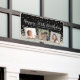 Elegant custom birthday banner design featuring gold and silver confeti over a black background, modern typographiy with the words "Happy 50th Birthday" with your name and date (en silver) and three of your favorite framed in metallic silver foil.
